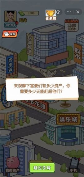 玩家将体验从小伙逆袭成为大富翁的快乐,资金充足可以投资更多的公司,形成你的集团,你就可以无忧跻身世界富翁的一员了。