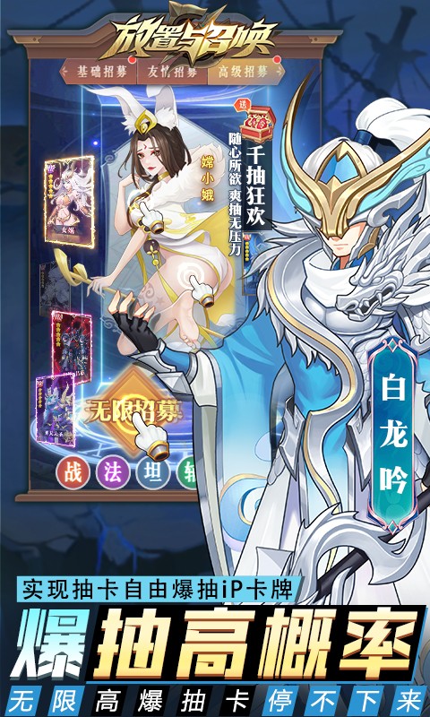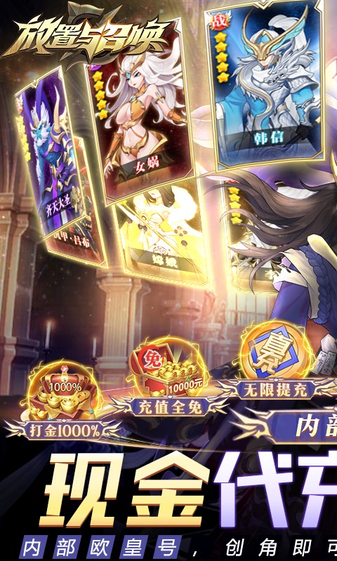 放置与召唤现金免充高爆版是一款休闲挂机类的卡牌手游,在放置与召唤现金免充高爆版中,玩家可以无限高爆抽卡实现抽卡自由,还有剑仙直充每日可领大量充值,创角即送内部好,所有福利一律解锁