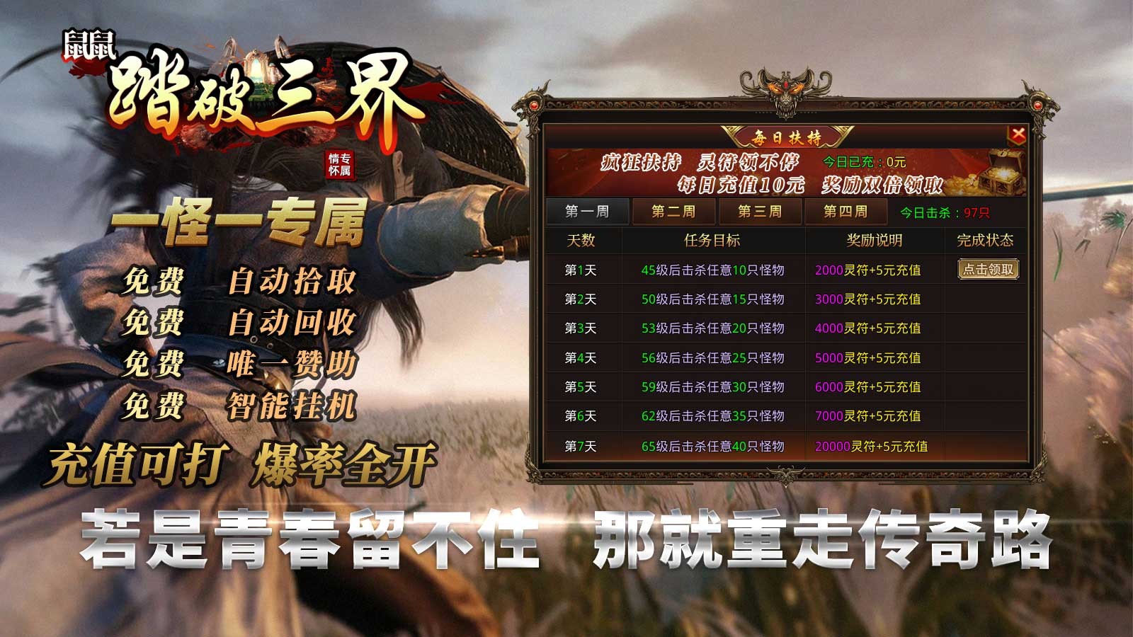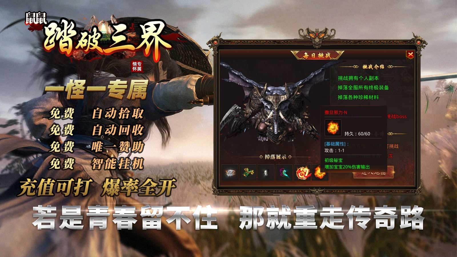 鼠鼠踏破三界是一款非常有情怀的传奇游戏。在鼠鼠踏破三界中融合了多种经典的传奇玩法,持续更新增加游戏趣味,感受真正的传奇,找回昔日的情怀,感受战斗的无限快乐吧。