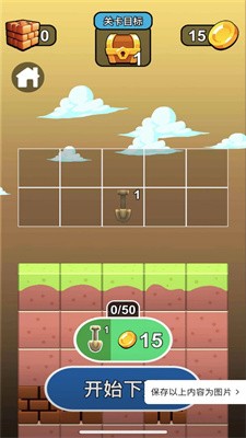 1.合成铲子进行挖矿挑战,每挖一块土地就能获得一定的金币,金币可以用来购买新的铲子。