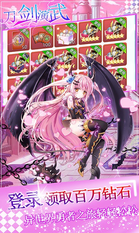 刀剑演武登录送百万钻石是一款二次元魔幻卡牌手游,在刀剑演武登录送百万钻石中有超多可爱美少女等你来收集,上线就送100高级召唤券,美女统统入我怀,创角直升VIP8还有百玩钻石免费领
