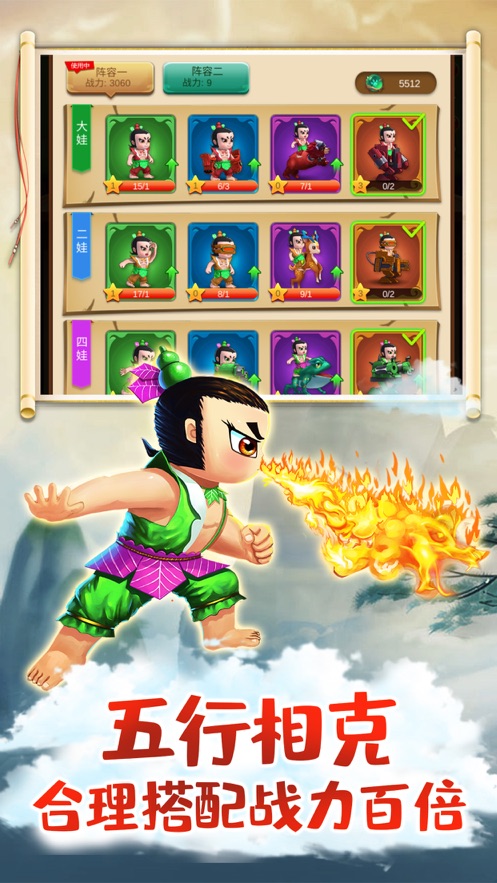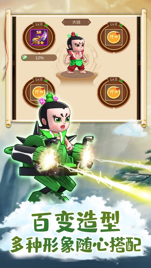 1、一款手机游戏,使用葫芦宝宝作为在线卡合成主题;