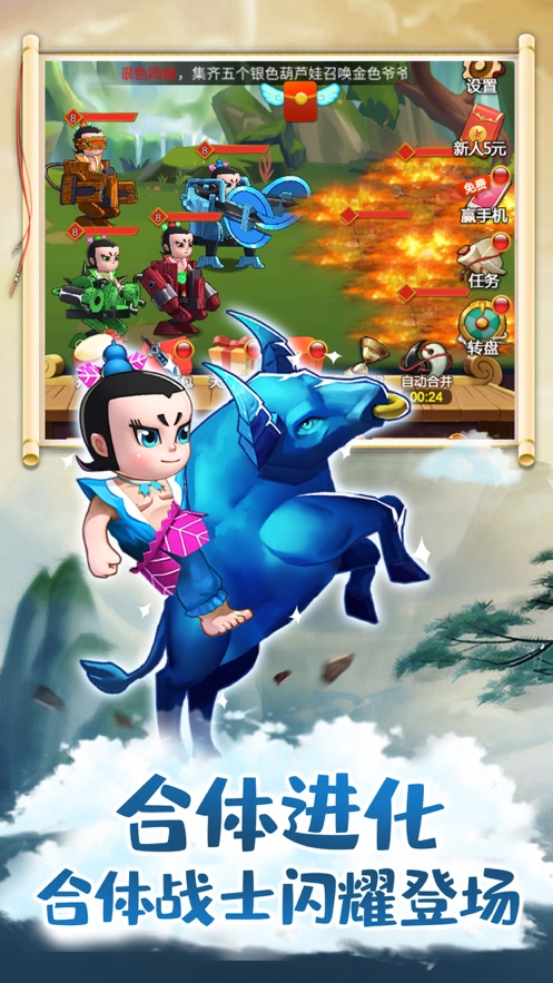 2、集成进化系统,挂机,回合制,赢得红包等多种游戏玩法;