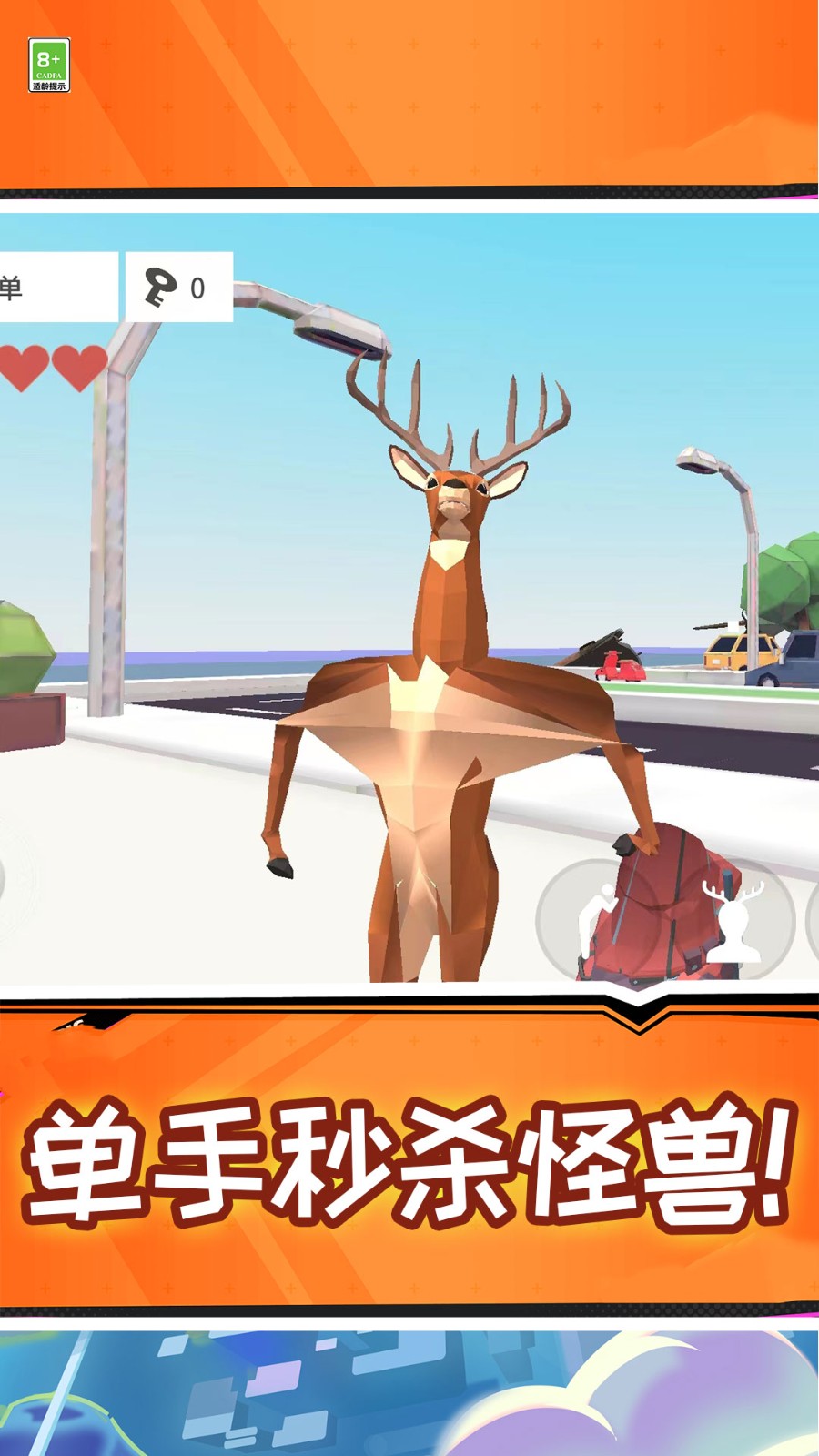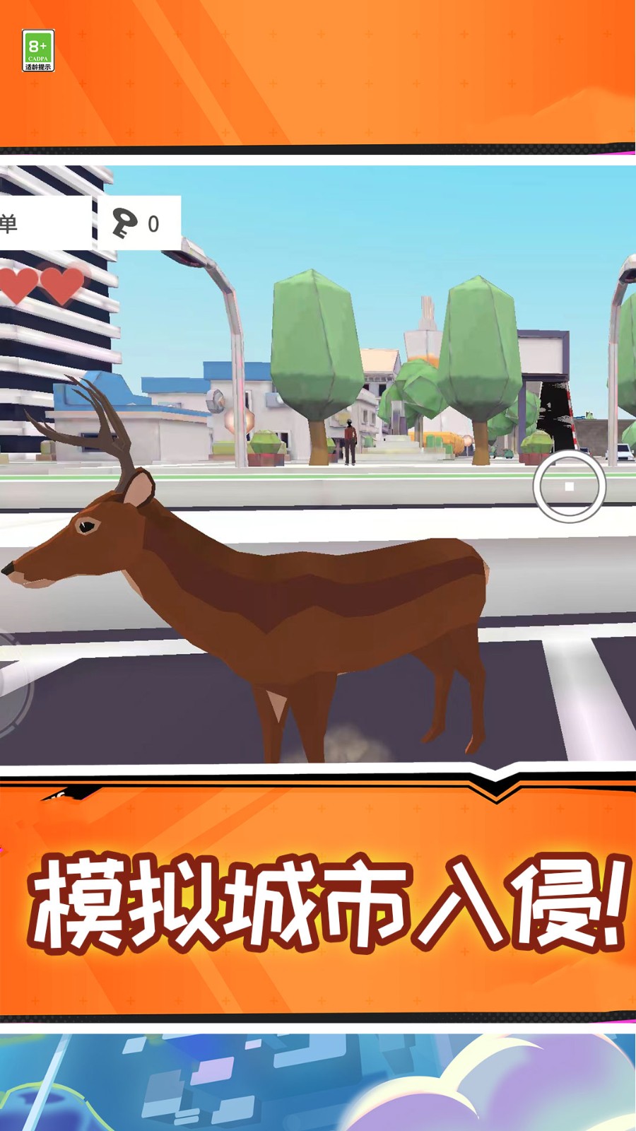 玩家将在游戏里感受趣味的过程,操控你的鹿横冲直撞,在城市之中掀起不晓得风波,让所有人和动物都能见识到你的厉害!