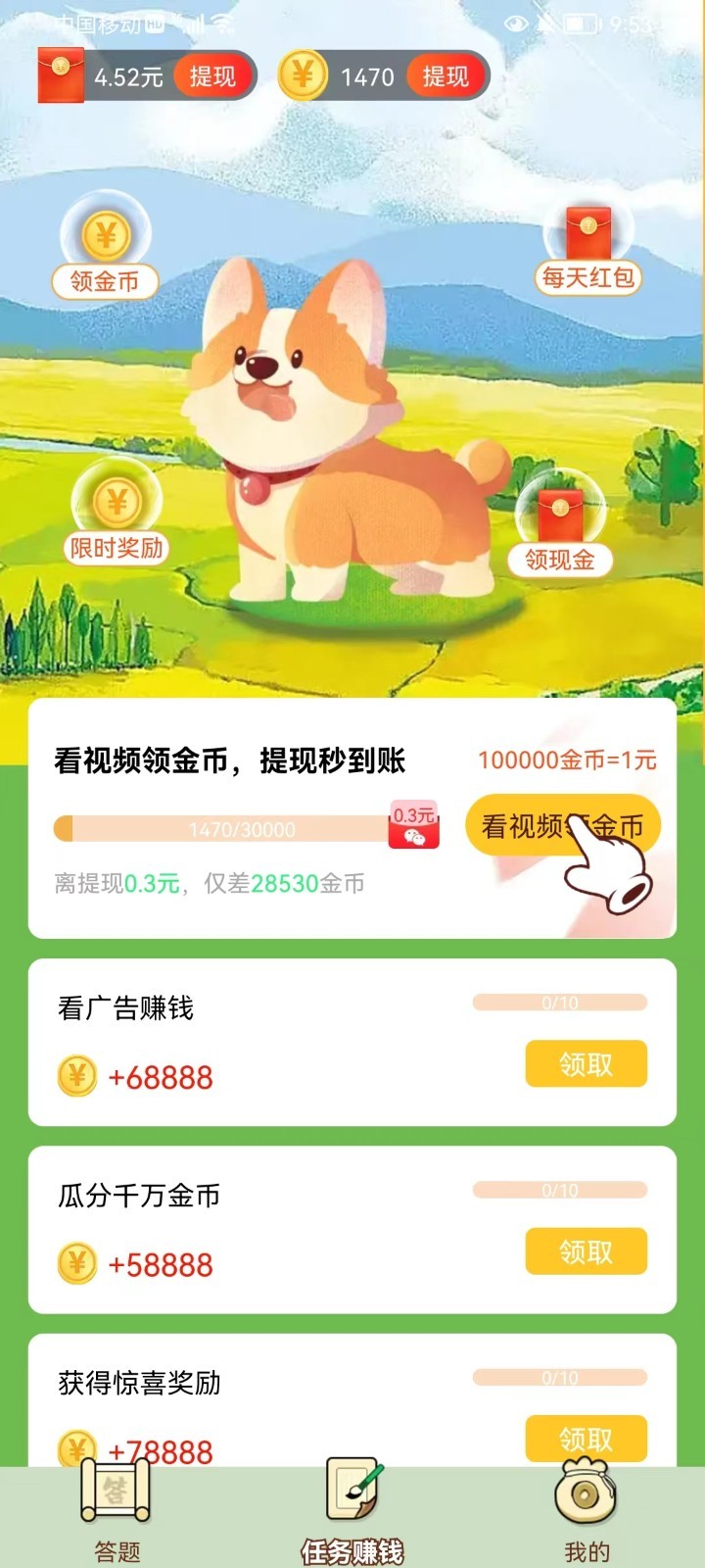 3.有很多任务可以赚钱,每完成一条就可以领取对应的红包