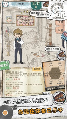 1.开启月光宝盒,解锁你的全新人生,在人生过程中你将会遇到许多随机事件,合理选择,获得属性。