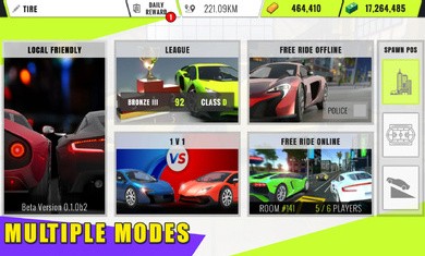 1.有 5 种不同的模式可以尝试,分别是离线飙车、在线竞速、激情联赛、1V1比赛、联机飞车。