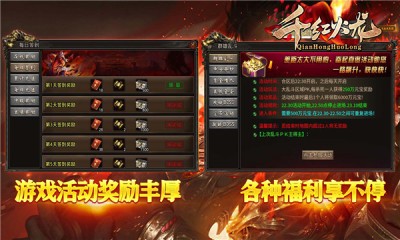 1.内功心法,火龙神兵,爆率转盘,特色玩法让你应接不暇,BOSS爆一切,杀怪有惊喜,逆天装备随机爆。