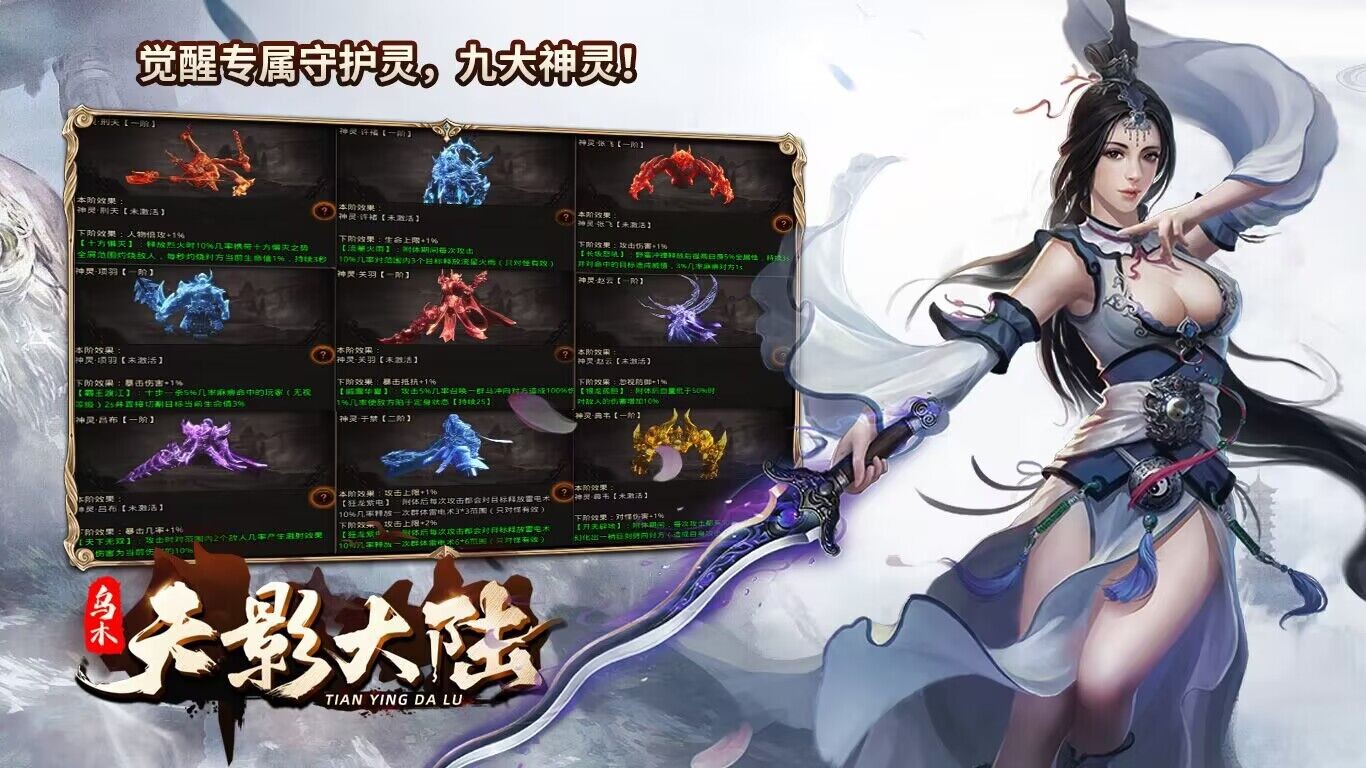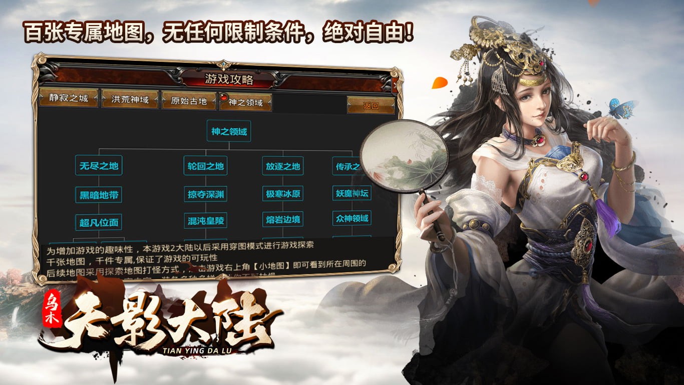 乌木天影大陆是一款有多种玩法的传奇游戏。在乌木天影大陆中,玩家将在百种地图之中冒险,还有千件专属等待你来解锁,怪物刷新率非常高,PK不秒杀,打怪完全不枯燥,激情四射,爽快刺激。