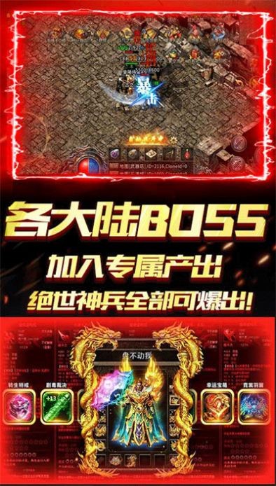 1、这里还有更多的传奇战斗等着你,拥有炫酷的技能和华丽的特效,大量的boss挑战等着你安排,采用全新的战斗系统。
