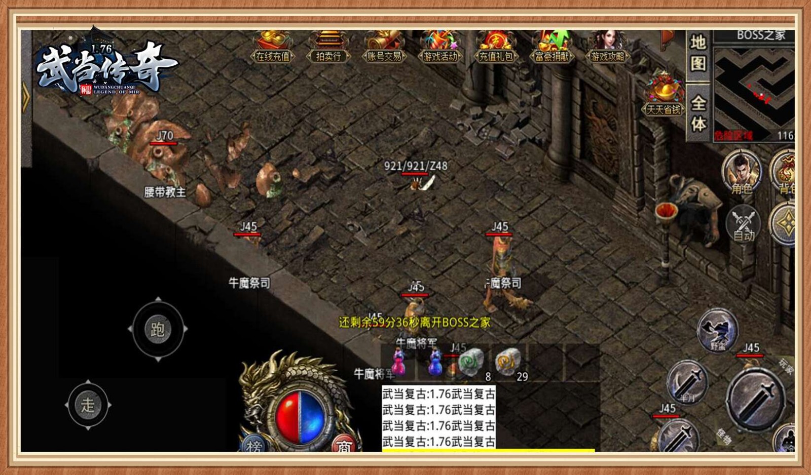 2.不喜欢打怪升级的不要来,BOSS爆宝,爆率非同一般的高,一瞬间装满背包。