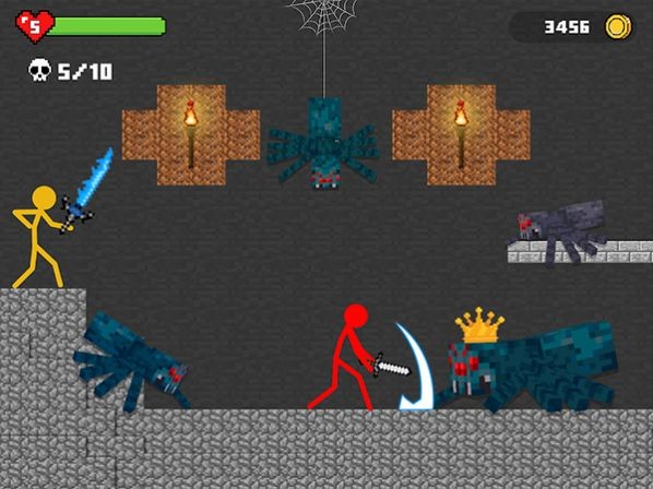 工艺世界中的火柴人之战,一款像素火柴人横版冒险游戏。工艺世界中的火柴人之战游戏中有很多的敌人开始一系列的战斗玩法,搭配不同的武器道具,消灭蜘蛛,僵尸等等。完成每一个关卡的目标,同时你需要注意自己的血条,来开启冒险吧。
