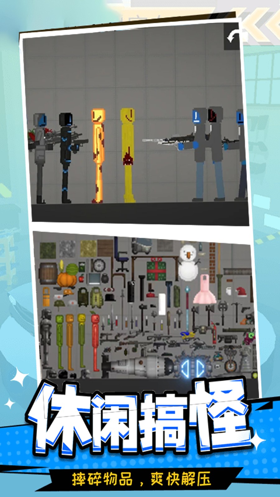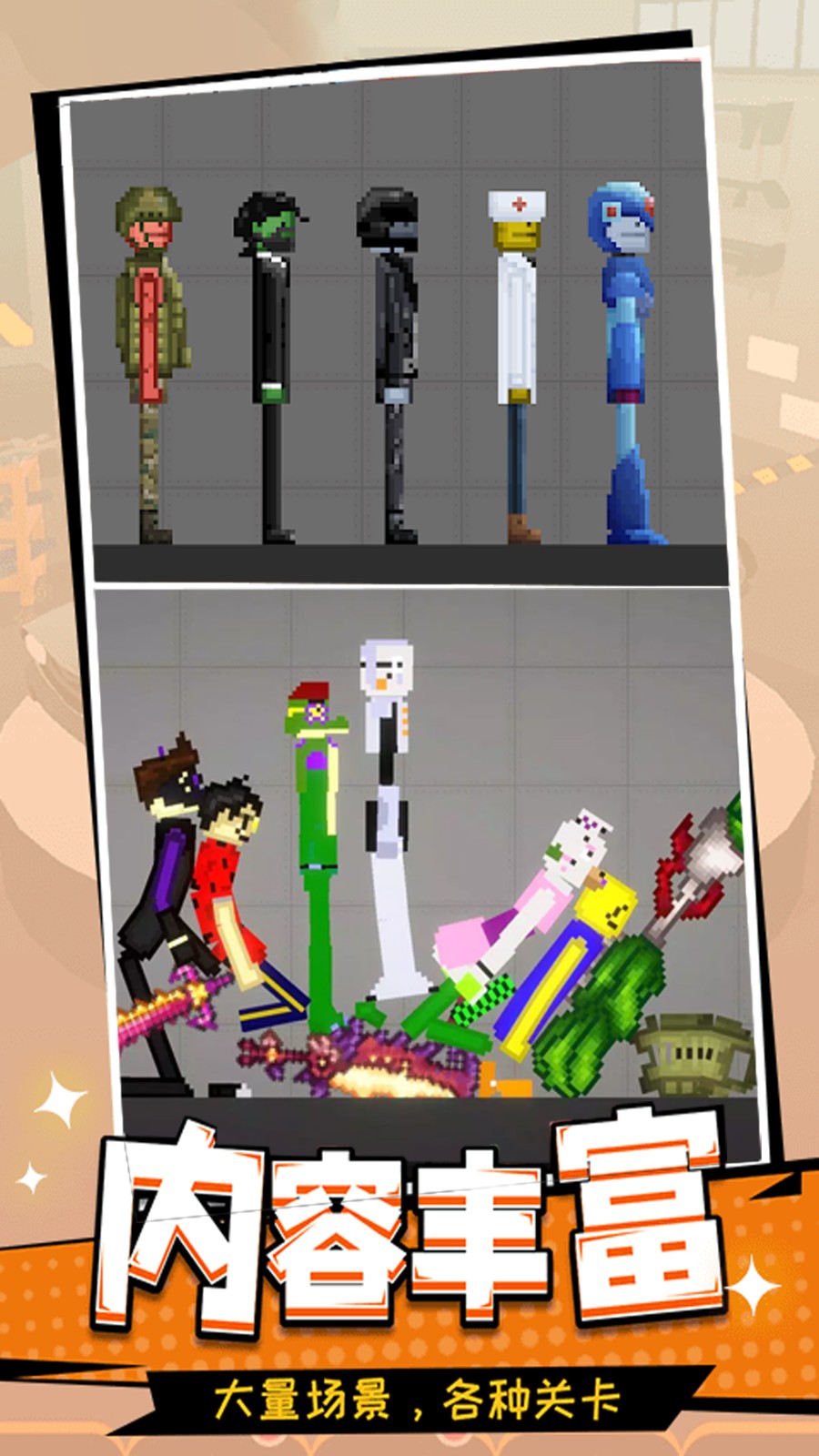 世界沙盒乐园,一款火柴人沙盒闯关冒险游戏。世界沙盒乐园游戏中有很多的武器道具可以选择,在这里安排一系列的休闲搞怪,摔碎物品,破坏场景。或者制造武器,将所有的对手全部消灭。大量场景战斗开始,内容丰富,来试试吧。