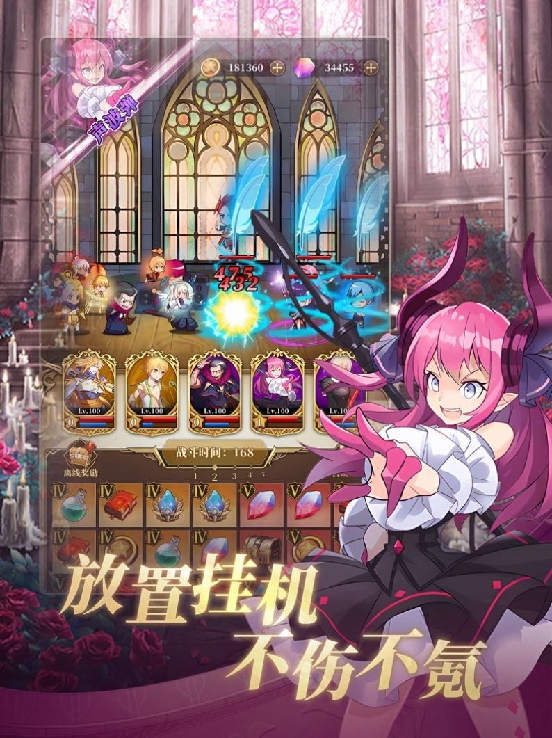 3.二次元风格的放置卡牌RPG游戏。融合了策略、闯关、养成、放置、挂机、对战等多重元素