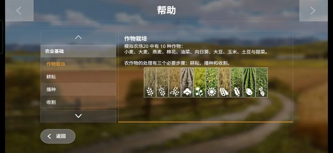 作物的选择更直接关系到赚钱的进度,我们可以出售的作物一共有10种,从“价格”中很明显可以看到大豆的价格绝大多数时候都是最高的,但最终售价还得综合具体产量,我自己在马围场旁边的那块农田做过实验,把所有作物在同一块农田都种植了一遍,结果是:作物的产量跟价格成反比,单价越高的产量越低,产量越大的价格越低,计算下来基本上一块农田无论种什么只要在高点出售基本赚到的钱都差不多,但是产量低的作物收割机谷仓很快就会满,所以你需要不停地去把粮食卸到拖车上,很麻烦,因此前期只种单价高的作物就可以,推荐种植大豆(大豆价格最高的时候可以到一千九百多,不过遇到的几率不大,一般在1700以上都是很高的价格了),而且对相关配套农具的要求也最低,能快速的积累金钱。(大家下载的版本大多都是修改版,开局有大量金钱,可以购买任意农具,不过怎么说呢,这样就完全失去了模拟经营的意义)