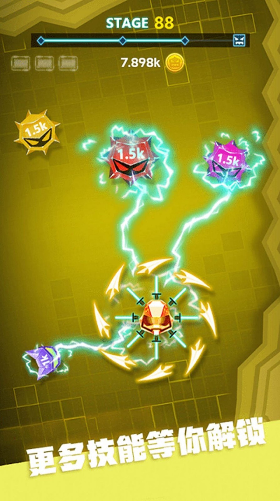 2.超多技能可以解锁使用,有雷击、范围射击等技能可以帮助玩家快速击败敌人