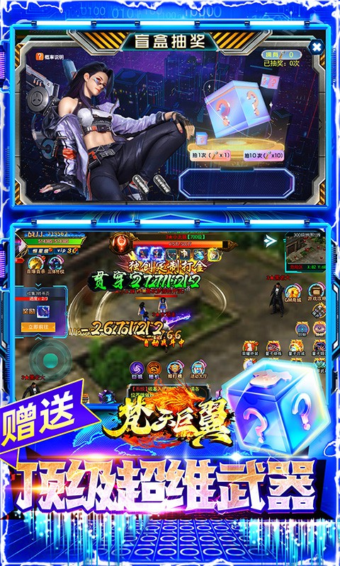 梵天巨翼三体全民打金是一款独家三体科幻传奇手游,在梵天巨翼三体全民打金中,玩家上线就有机会瓜分十万真充,登录还送满级VIP、超维武器和称号,打怪就送全部全部赞助,零氪还能领充值