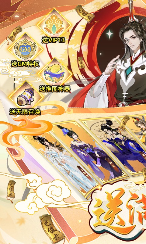千秋辞送满星袁天罡是一款国风三国策略手游,千秋辞送满星袁天罡全新福利版本,余额无限抵扣,充值无上限,上线就送VIP14,神将直接集满,签到还送GM商城特权,资源全免,推图还送充值,首充月卡全白嫖