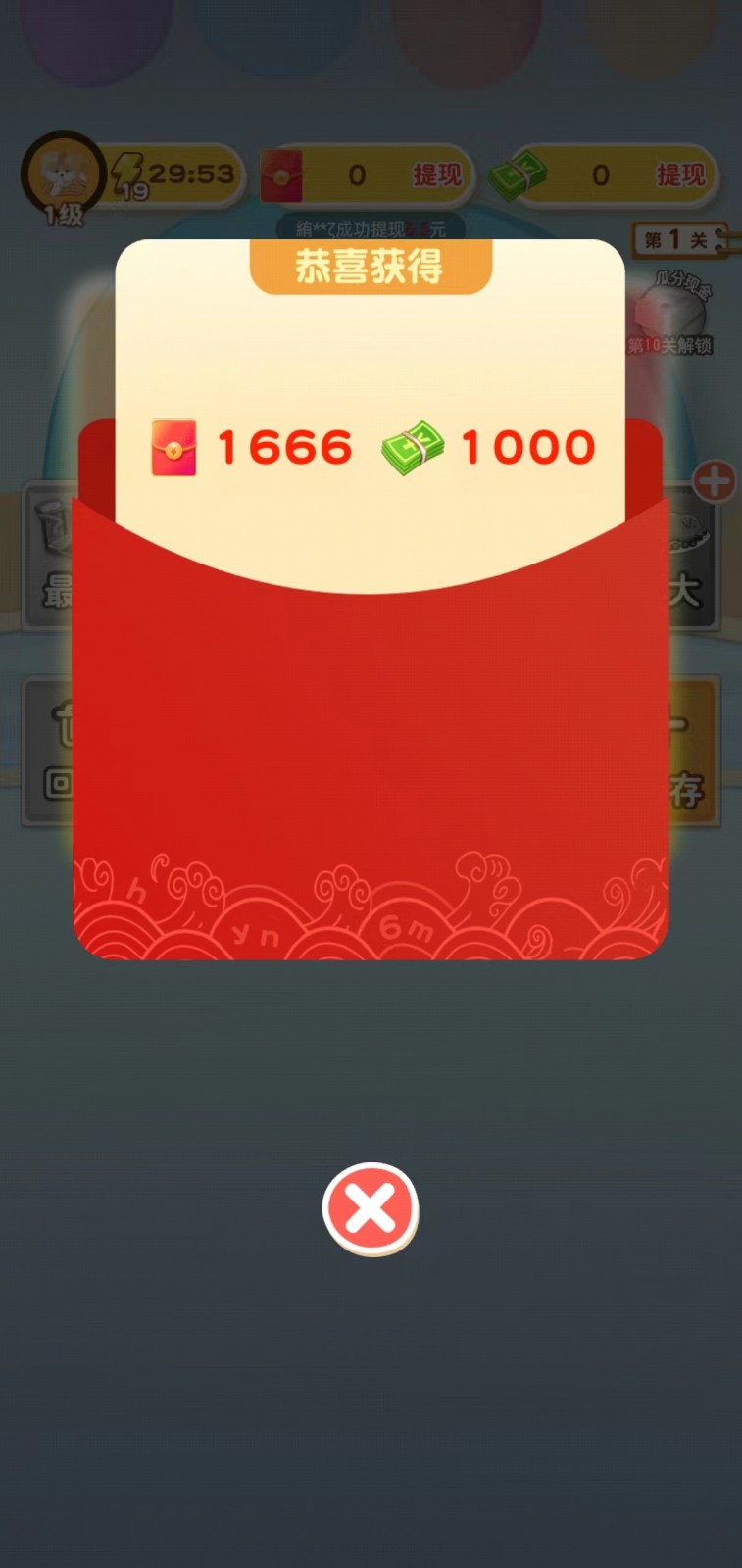 2.完成指定关卡数量就能达成红包任务,还有看视频就可以开宝箱
