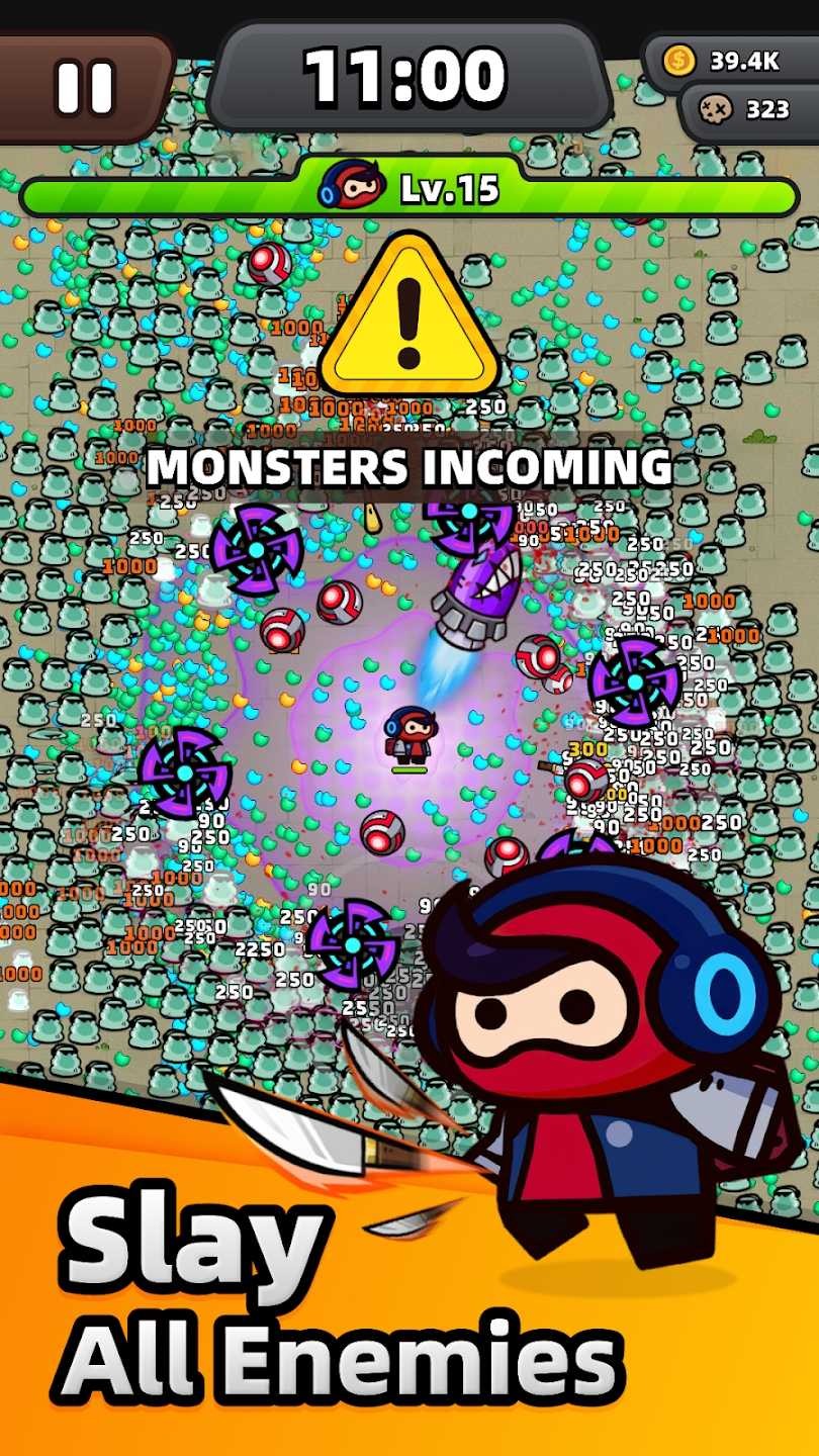 3.每次都将应对上百上千的怪物围攻,单手控制就能战斗,用你的方式击败所有敌人