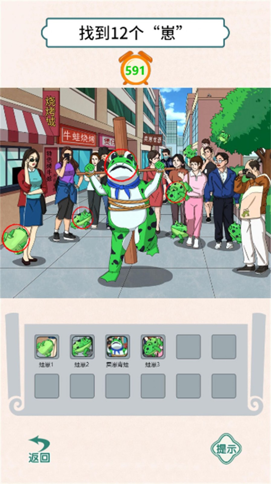 头脑风暴大作战,一款休闲益智解谜找茬游戏。在头脑风暴大作战游戏中,玩家需要在每一个关卡中,找到关卡需要你寻找的东西,而且这里还有很多的逻辑思维能力可以解开一系列的问题哦。丰富的关卡,独特的挑战模式,不容错过的解谜游戏。