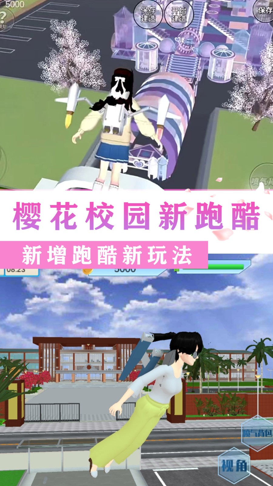 游戏内的场景非常丰富多样,玩家可以自由体验异国他乡的校园文化,还能自由交互聊天,甚至通过喷气背包在空中展开飞行。