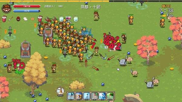 像素风格的快速割草游戏,玩家将快速移动,迅速施法,击杀各路妖魔鬼怪,在快节奏的战斗之中感受血脉喷张的快乐,不断提升自己的能力,成为最强角色吧。