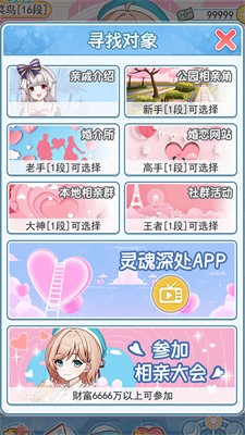 3.游戏中提供了多个不同的角色和情节线路,每一次相亲都将开启全新的故事和结局。