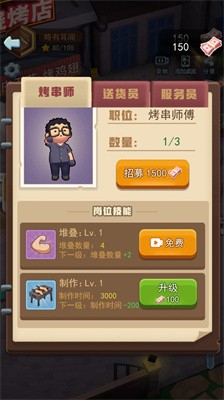 2.超多员工等你来招募,不断提升你的烧烤店等级,提升员工的数量配置,帮助你更好地经营烧烤店。