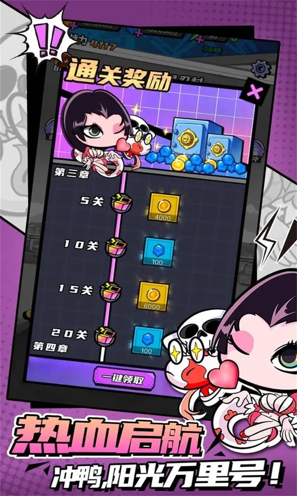 3.还可以在游戏中与其他玩家进行交流和竞技,热血启航战斗,冲鸭,来开始你的探索和冒险,还可以和朋友分享游戏心得和经验。