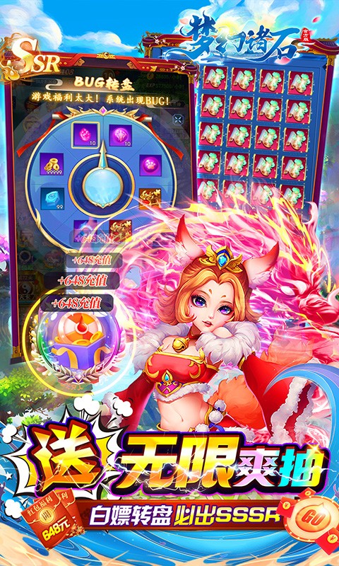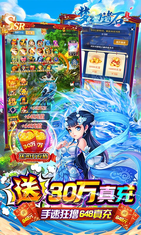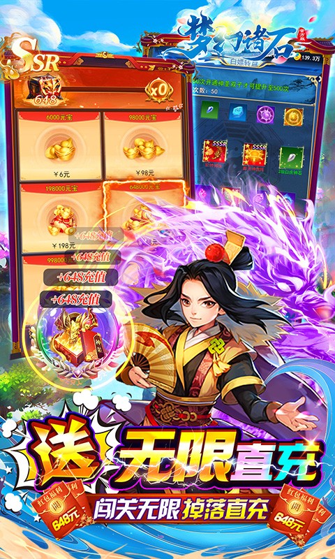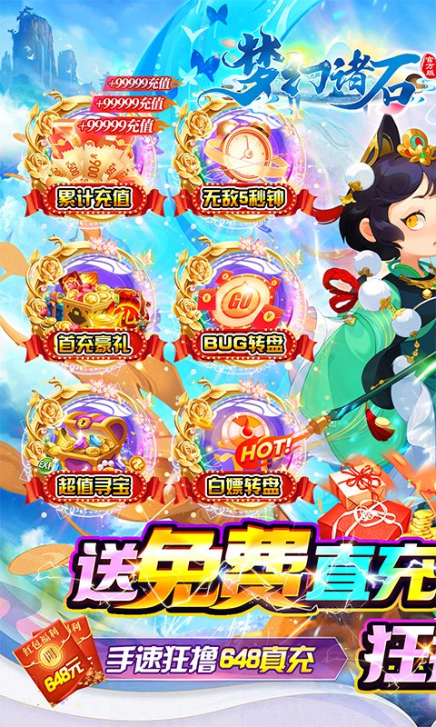梦幻诸石官方版直充无限刷高自由度放置仙侠手游,在梦幻诸石官方版直充无限刷中,玩家上线就送免费充值工具,还有满级VIP和海量金币、元宝和材料可以免费领取,开局狂撸648充值,闯关还送无限真充