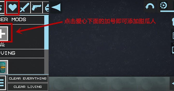 最新版已内置了经典甜瓜人模组,位于主界面左上角各类模组界面最左侧的爱心图标下,点击USER MODS下的+即可添加,可查看下方截图找到具体位置。