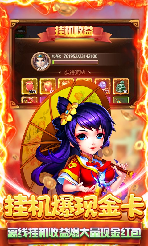6.闯关福利:闯关胜利即领充值卡,一关一送简直不要太爽,挂机还有现金卡碎片,免费合成现金卡!
