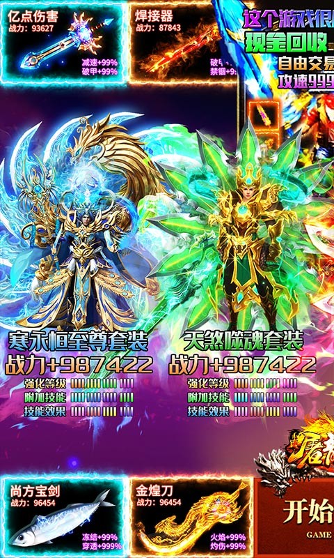 【屠龙杀(打金回收充值乱爆)】 是一款复古三职业传奇!上线送豪华福利、百万元宝和大量战力道具!!装备回收送真充,可以激活游戏内所有累充活动!刷怪掉落大量充值卡,可以合成现金卡,免费十档VIP全都可以通过任务获得,平民玩家的天堂,挂机刷怪就能成为霸服大佬。