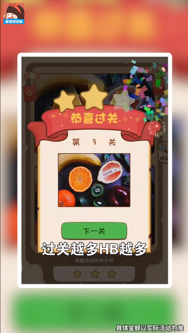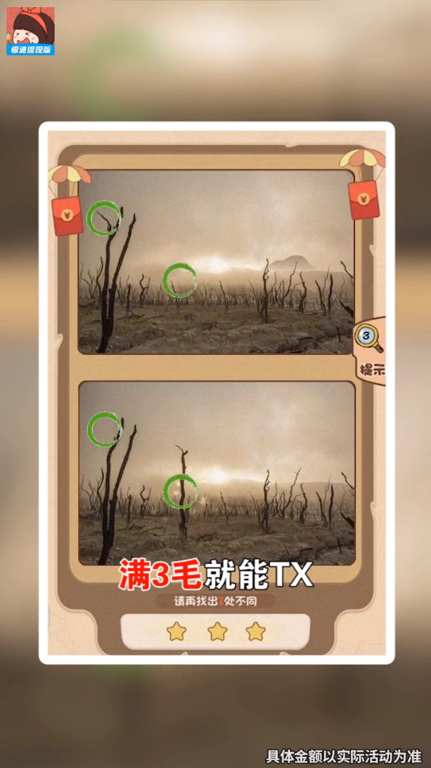 1.完成找茬闯关就可以领取红包,将图中所有不同找出即可获得红包奖励