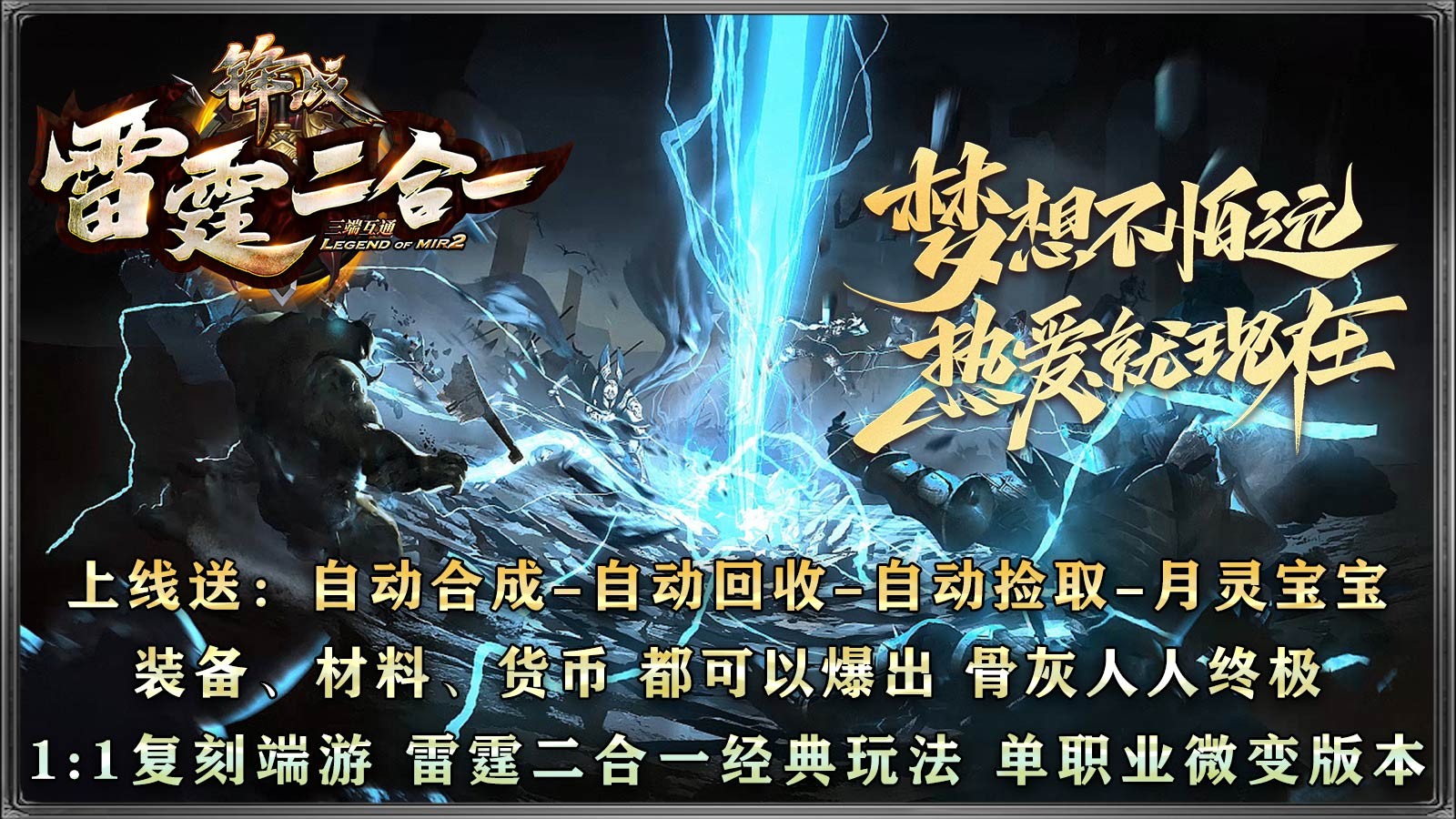 锋战雷霆二合一是一款二合一版本的传奇游戏。在锋战雷霆二合一中,上线就送各种贴心的功能,把解放双手,1:1复刻端游,单职业微变版本,好玩没套路,散人也能满级通关,感受刀刀爆砍的激情时刻,无限爽快。