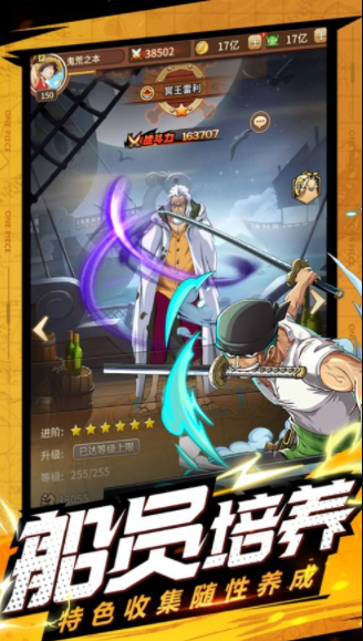 3.通过收集卡牌和培养角色,搭配出强力的战斗阵容,集结一支属于自己的海贼团队。