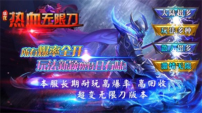 华龙热血无限刀是一款1.95无限刀传奇手游,超多福利好礼等你来领取,无论画面还是玩法,绝对用心制作。在华龙热血无限刀中,还原经典传奇玩法,尽情享受高清畅爽舒服打怪和刺激PK体验。