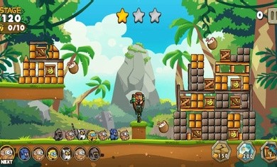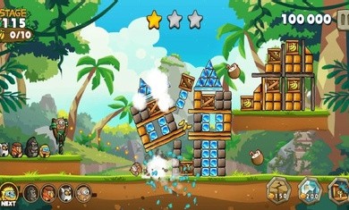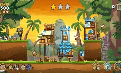 2.每个关卡的目标是摧毁所有建筑物,并收集指定数量的香蕉,射击越多的猴子越容易通过关卡。