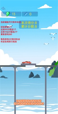 1.进入关卡开启挑战,长按屏幕增加桥板的长度,当与断桥距离相当时松手,让车辆顺利通过断桥。