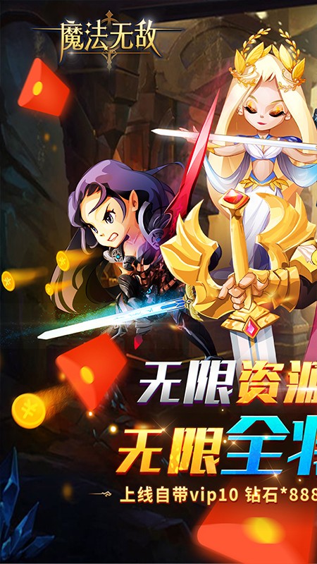 魔法无敌无限真充资源全将是一款魔幻回合制卡牌手游,在魔法无敌无限真充资源全将中,有无限资源、无限真充、无限全卡自选等豪礼免费领,上线即送VIP10,钻石金币免费送,天天还有百抽福利可以领