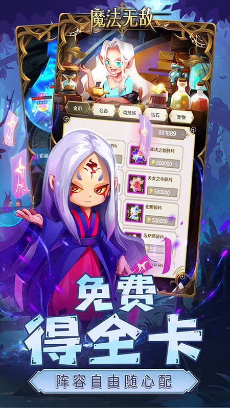 超爽竖版放置手游-《魔法无敌(无限真充资源全将)》震撼来袭!本次版本的福利力度与升级速率大幅上调,无限资源、无限真充、无限全卡自选等,各种豪礼加持!魔法无敌(无限真充资源全将)是一款休闲策略卡牌游戏,每个英雄拥有多种技能,自己加点搭配技能,玩家通过自由搭配阵容,打造自己最强的战队!
