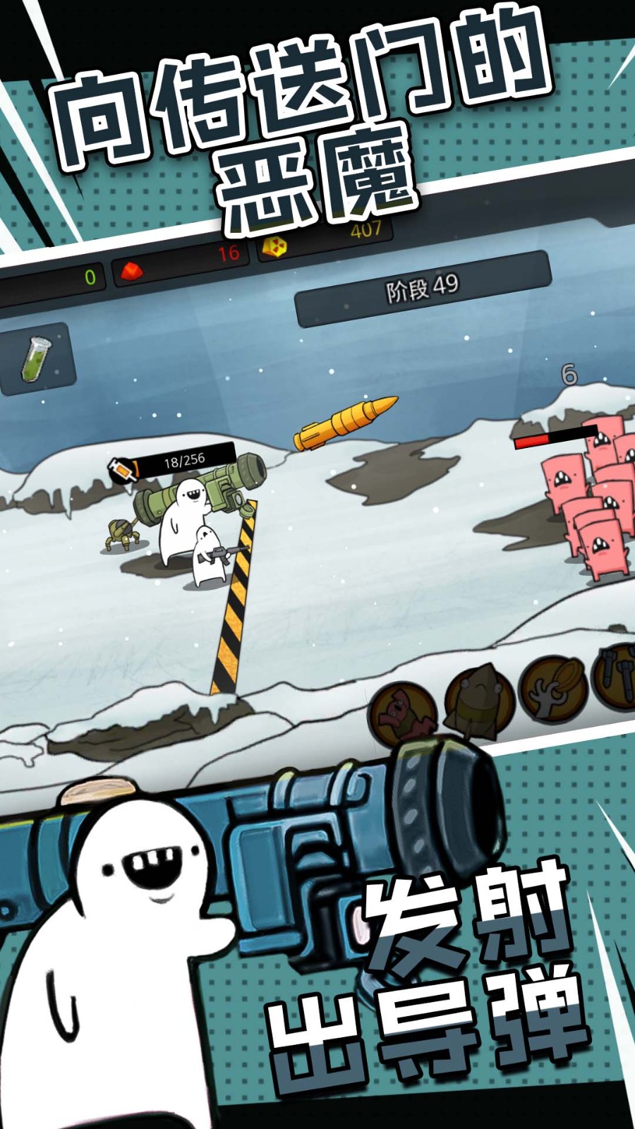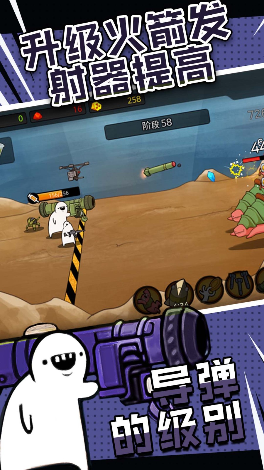 2.提升的方式主要是通过鸡哔怪物获得钻石,升级发射台、士兵、导弹等五个方面的攻击力。