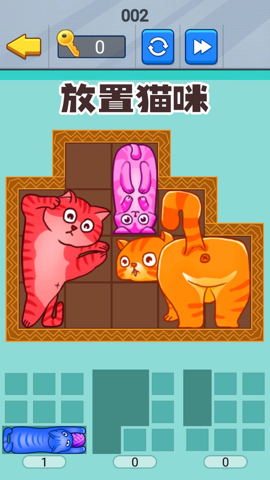 3.选择自己喜欢的猫咪形状,并且用你的聪明才智为它们在空间中找到合适的位置放置下去。