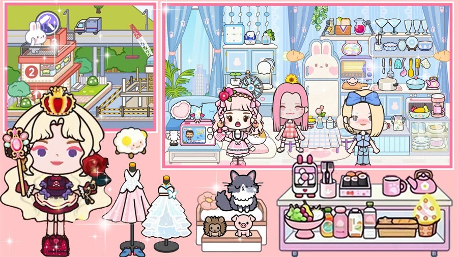 全新的服装设计包,粉色套装,波西米亚套装,马戏团套装上百种自由选择,还有表情可以自由更换,让角色生动起来。