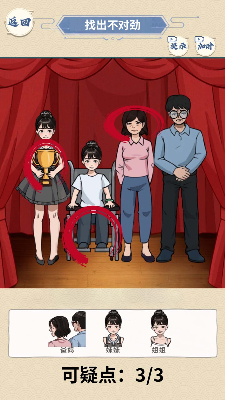 2、需要保证这里的不同和疑点都被找到,这里的游戏可玩性和趣味性都是不错的,并符合游戏的整体风格;
