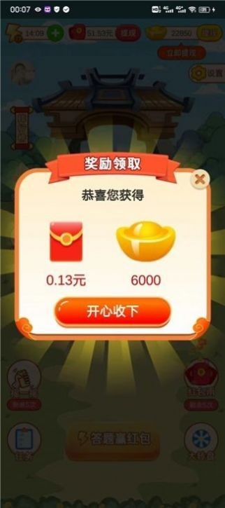 2.游戏中的元宝和红包都是可以用来提现的,每次奖励红包和元宝都有