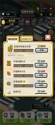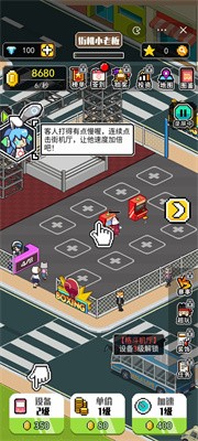 2.升级每个设备的单价,满级为72级,进一步提高机器收益,让你赚取更多金币,继续扩大店铺。