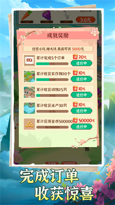 1.在你的庄园中种植各种各样的作物,完成一系列的订单任务,领取丰厚红包奖励,享受游戏的快乐。