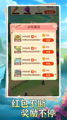 2.累积足够的经验,对你的庄园进行升级,每次升级都能获得红包,等级越高,获得的红包就越多。